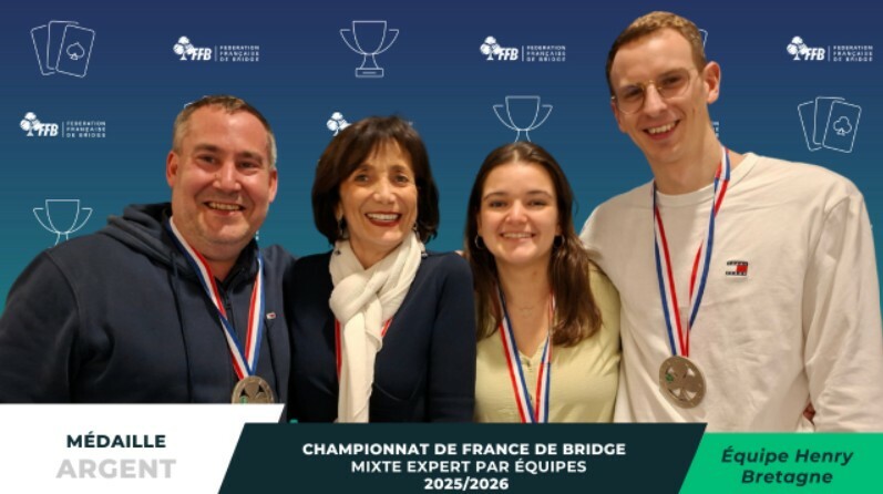 Félicitations à notre équipe de bridge pour cette magnifique performance à la finale mixte expert/4 qui s'est déroulée à Paris les 7 et 8 mars dernier.